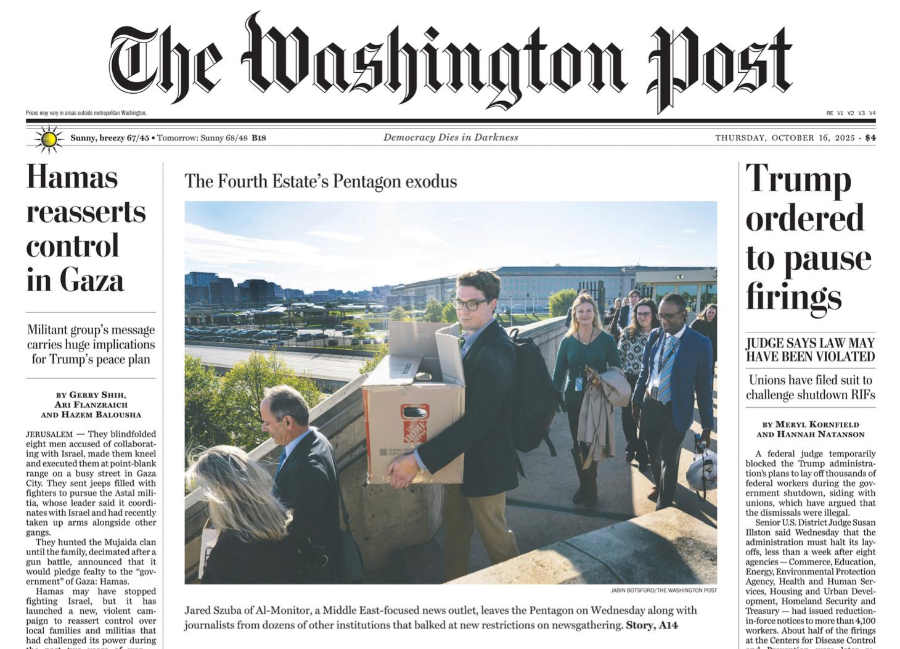 "The nation's military and defense journalists exited the Pentagon in unison Wednesday afternoon" after refusing to accept Pete Hegseth's new restrictions, WaPo's Scott Nover wrote. "The press corps spent the day clearing their desks, in some cases carting out remnants of years in the building." TV crews "tore down their broadcast booths, full of technical gear and soundproofing equipment," while reporters "lugged out boxes and rolled suitcases."