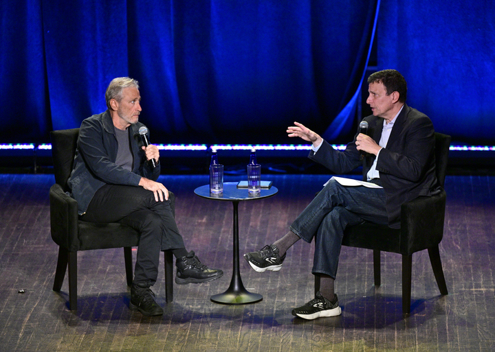 Remnick had brought up the political context earlier in the conversation: Jimmy Kimmel's suspension, Paramount's ownership change, perceptions of media mogul capitulation. So "what do you do" in those circumstances? "You don't compromise on what you do, and you do it till they tell you to leave," Stewart said. "That's all you can do."